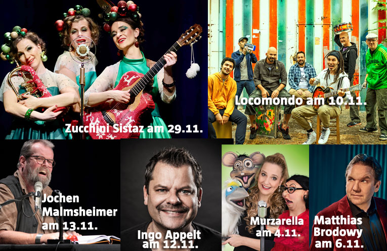 Weitere Höhepunkte im November bilden mehrere Bonnpremieren. So vom mehrfach preisgekrönten Kabarettisten Matthias Brodowy, der sein neues Solo „Sachen gibt´s...“ am 6.11. präsentiert und auch das Musik-Coverett-Duo „Reis Against the Spülmachine“ – Warmupper beim diesjährigen Wacken-Festival - zeigt seine neue Bühnenshow „Tourlaub“ am 7.11.. Nicht zu vergessen Dr. Lüder Warnken, der am 20.11. erstmals im Pantheon seine einzigartige Mischung aus „Meditainment“ und Comedy präsentiert. Er ist der Notarzt, dem die Patienten vertrauen. Virtuoses Musikentertainment der Extraklasse gibt es am 27.11. von der 5köpfigen Schlagzeugmafia und am 29.11. von den swingenden drei Zucchini Sistaz mit ihrer fulminanten Weihnachtsshow.