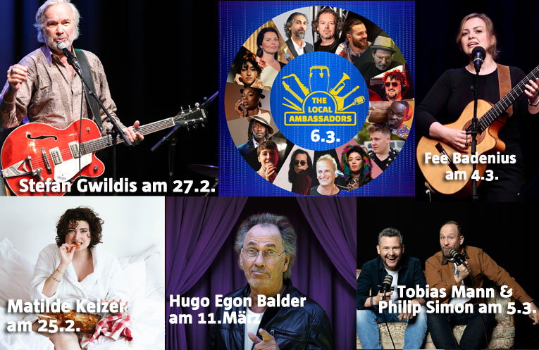 Und der März: Satire, Sketch-Comedy, Boogie Woogie, Stand-up, Liedermacher/Musik-Kabarett, Live-Kabarett-Podcast, Fußball-Entertainment, Jazz- und Rock-ACappella, PoetrySlam, ScienceSlam, Solo-Entertainment, Worldmusic, Kabarett, Zaubershows, Jazz, KlassikSlam, Rudelsingen, geblätterte Komik, ein kölsches Mitsingkonzert und TrueCrime...