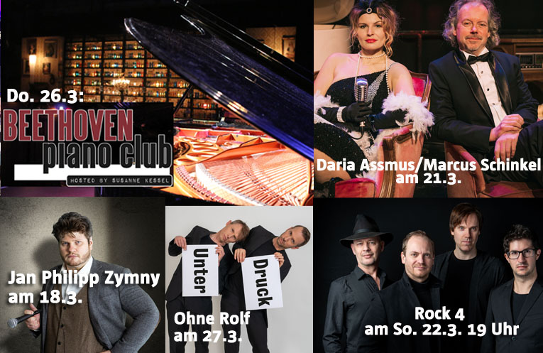 Satire, Sketch-Comedy, Boogie Woogie, Stand-up, Liedermacher/Musik-Kabarett, Live-Kabarett-Podcast, Fußball-Entertainment, Jazz- und Rock-ACappella, PoetrySlam, ScienceSlam, Solo-Entertainment, Worldmusic, Kabarett, Zaubershows, Jazz, KlassikSlam, Rudelsingen, geblätterte Komik, ein kölsches Mitsingkonzert und TrueCrime...