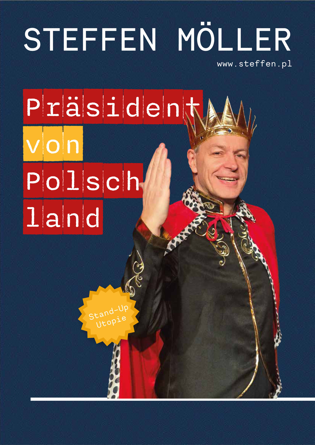 Ich habe einen neuen Staat gegründet! Polschland ist die ideale Heimat für alle, die seit Jahren zwischen Deutschland und Polen pendeln und schon gar nicht mehr wissen, wo sie eigentlich hingehören. Jetzt hat das ewige Vergleichen ein Ende, denn in Polschland gibt es nur das Beste aus beiden Ländern, kulinarisch, kulturell und sprachlich. Zusammen bauen wir das Paradies auf Erden: deutsche Currywurst und polnische Piroggen, deutsche Planung und polnische Improvisation. Ich selber bin Präsident (auf Lebenszeit), mein Publikum fungiert als Parlament, das viele kontroverse Fragen entscheiden muss: Sollen wir die deutsche Mittagsruhe und das polnische Tempolimit auf Autobahnen übernehmen? Wollen wir im Restaurant getrennt oder zusammen zahlen? Wann wird geduscht, morgens oder abends?